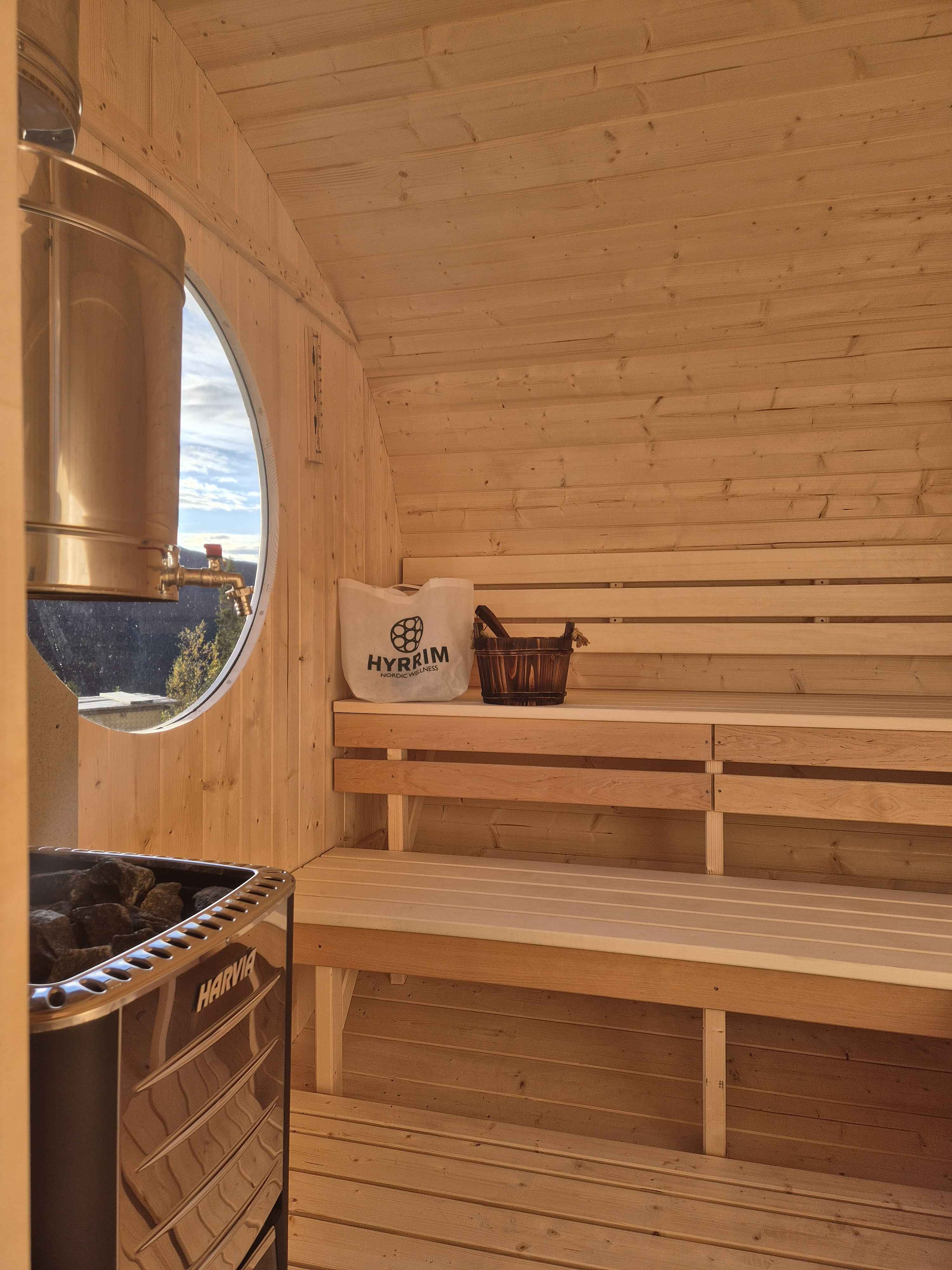 - Romslig badstue på 2,5 meter med benker med ryggstøtte