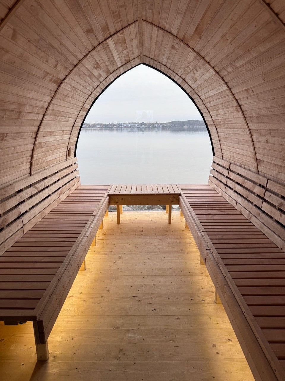 En badstue som skiller seg ut med sitt karakteristiske design, like fin ved hytta som i hagen. Den buede tunnelformen gir badstuen et unikt uttrykk og skaper en helt spesiell romfølelse innvendig.